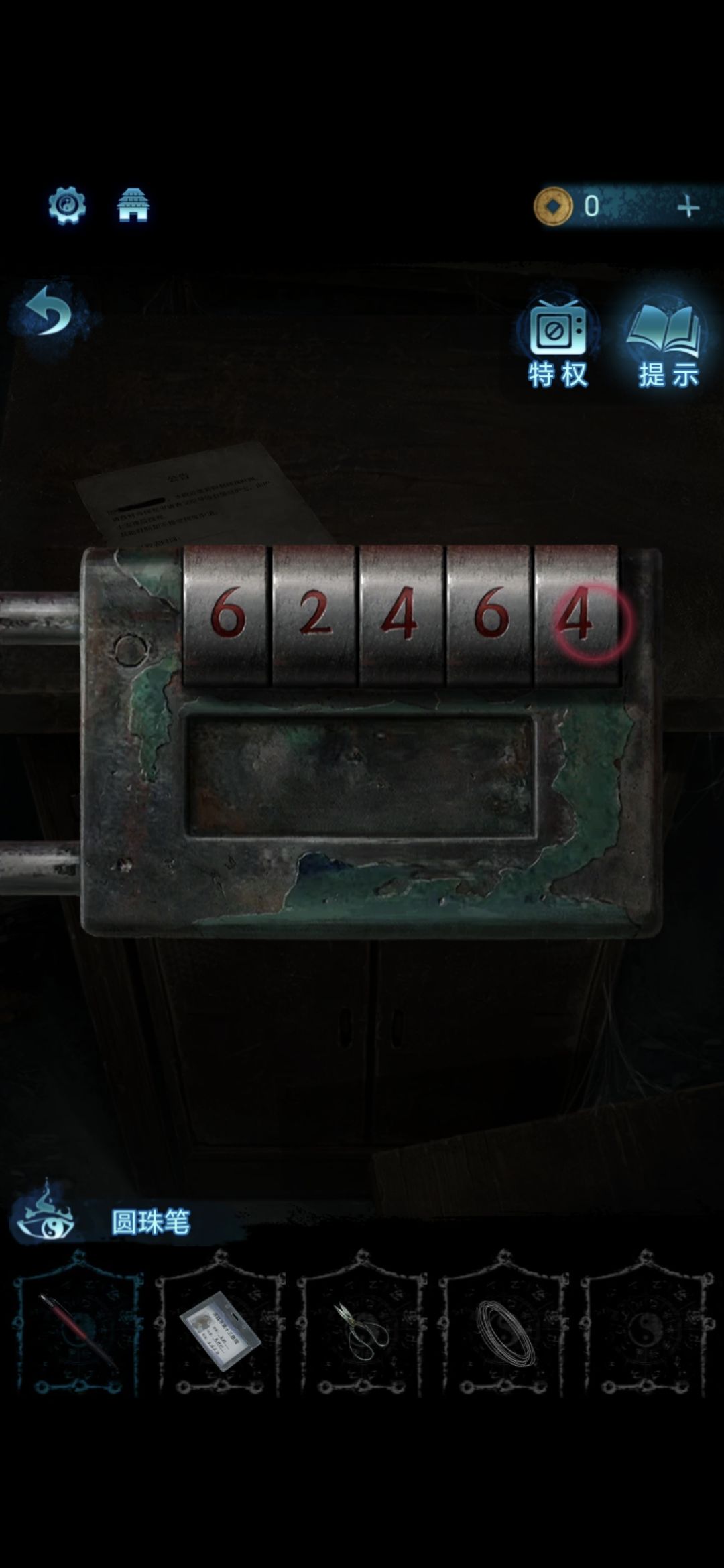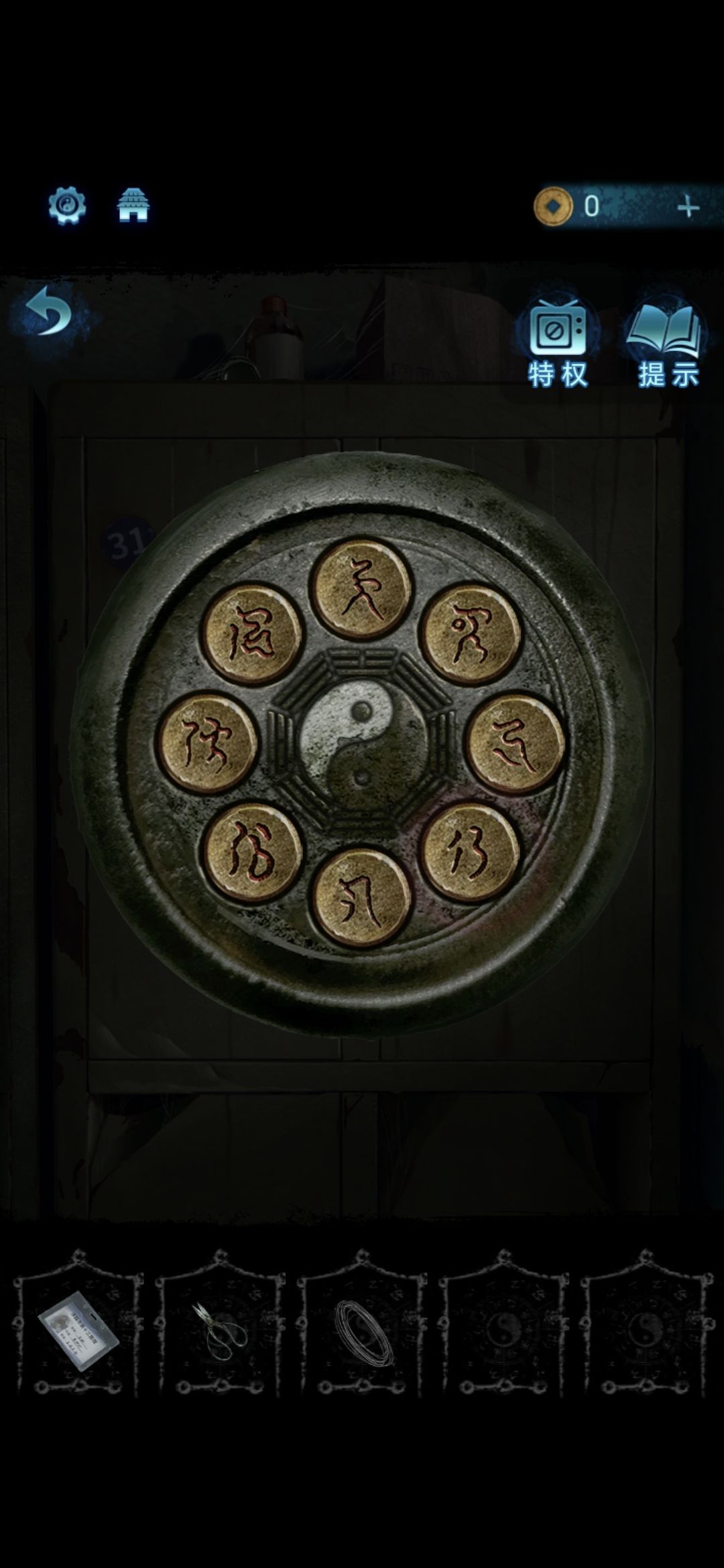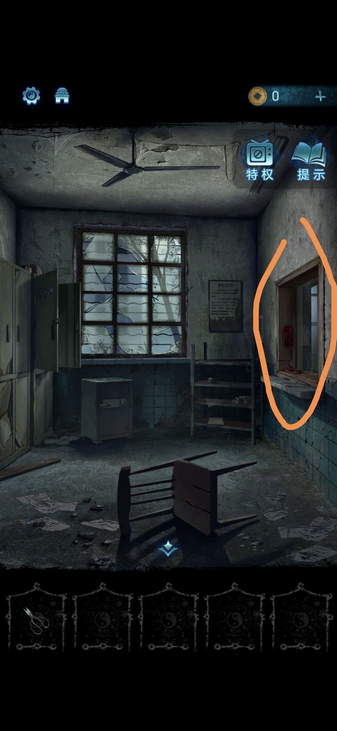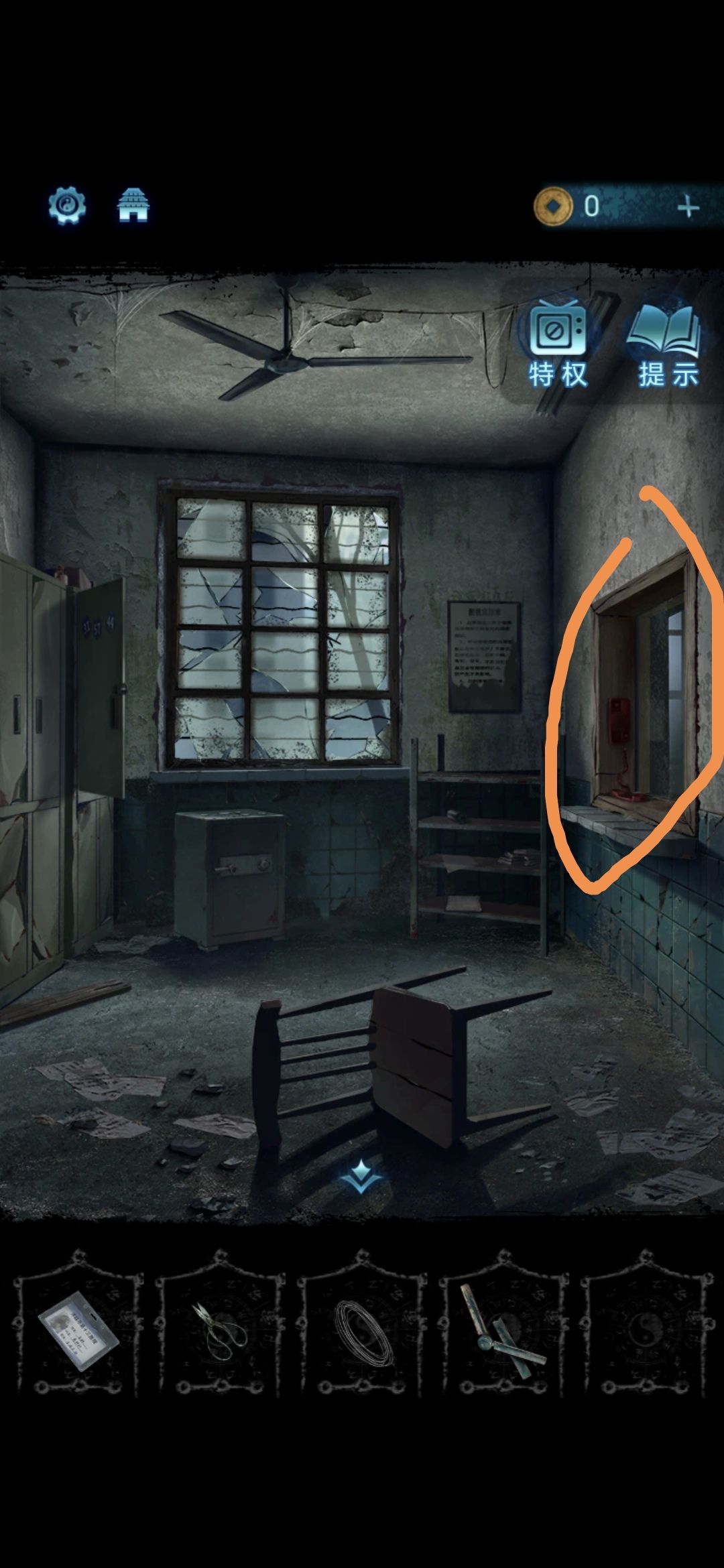 进入探望室,根据架子上的病例本上的符号,按照左侧柜子上的标号顺序排列,解开柜子上的锁,获得吊扇