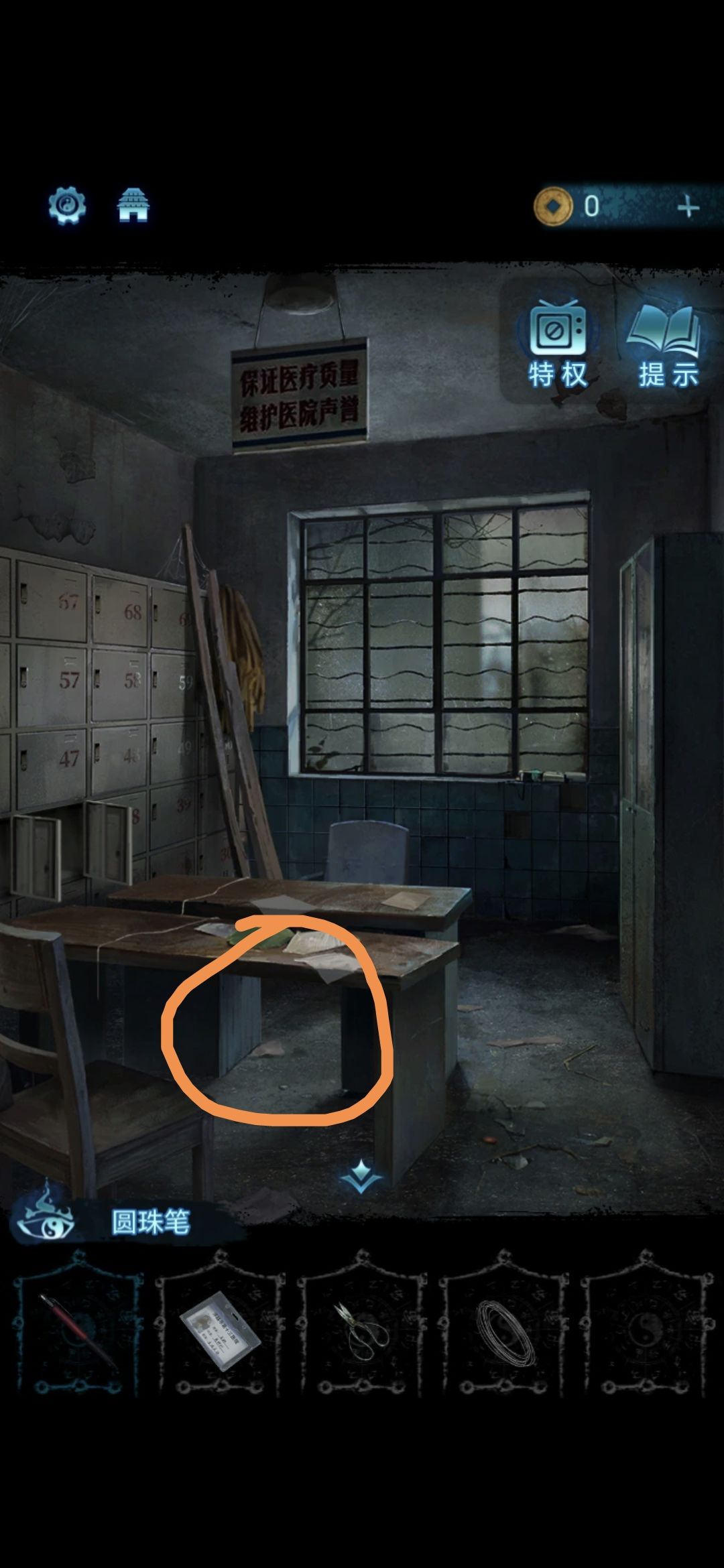 在大厅前台,点击获得圆珠笔