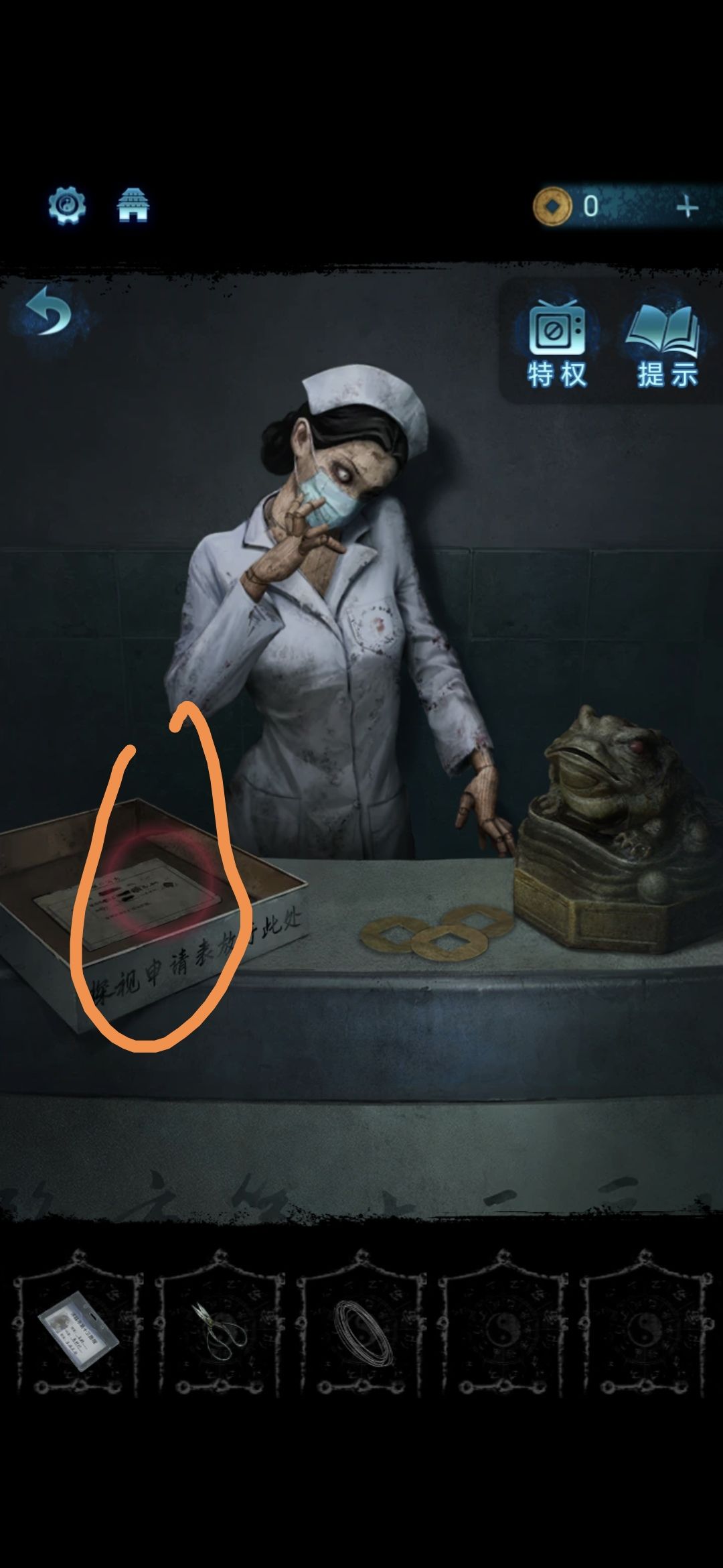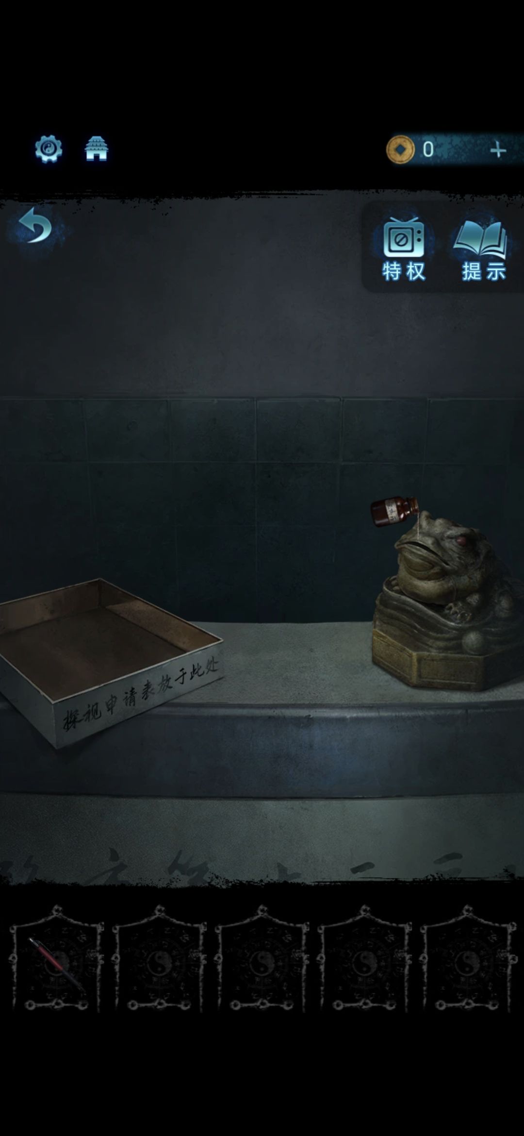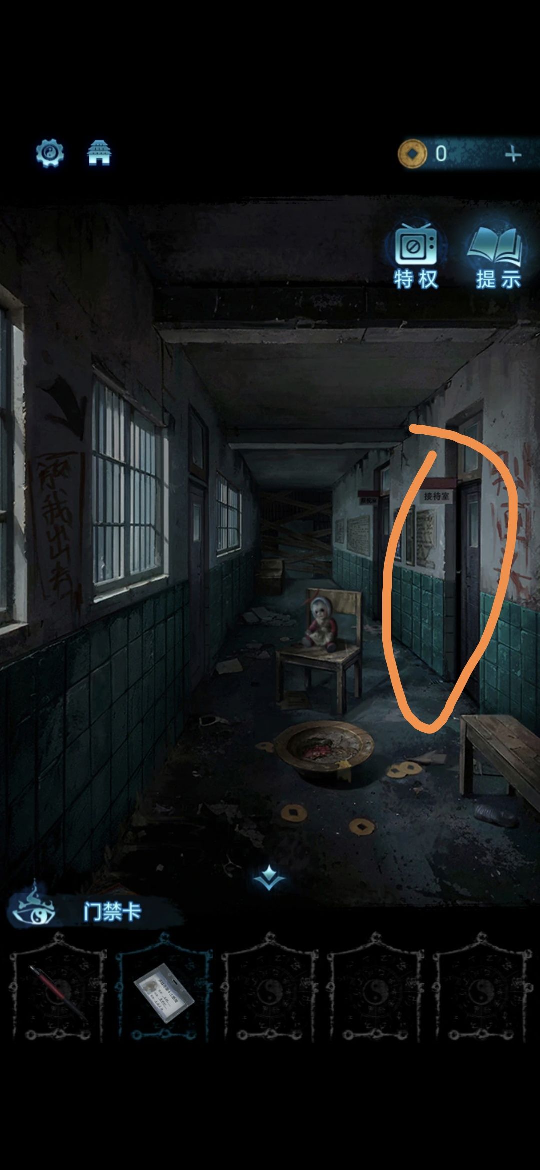 将获得的药瓶喂给前台桌子上的金蟾,获得门禁卡