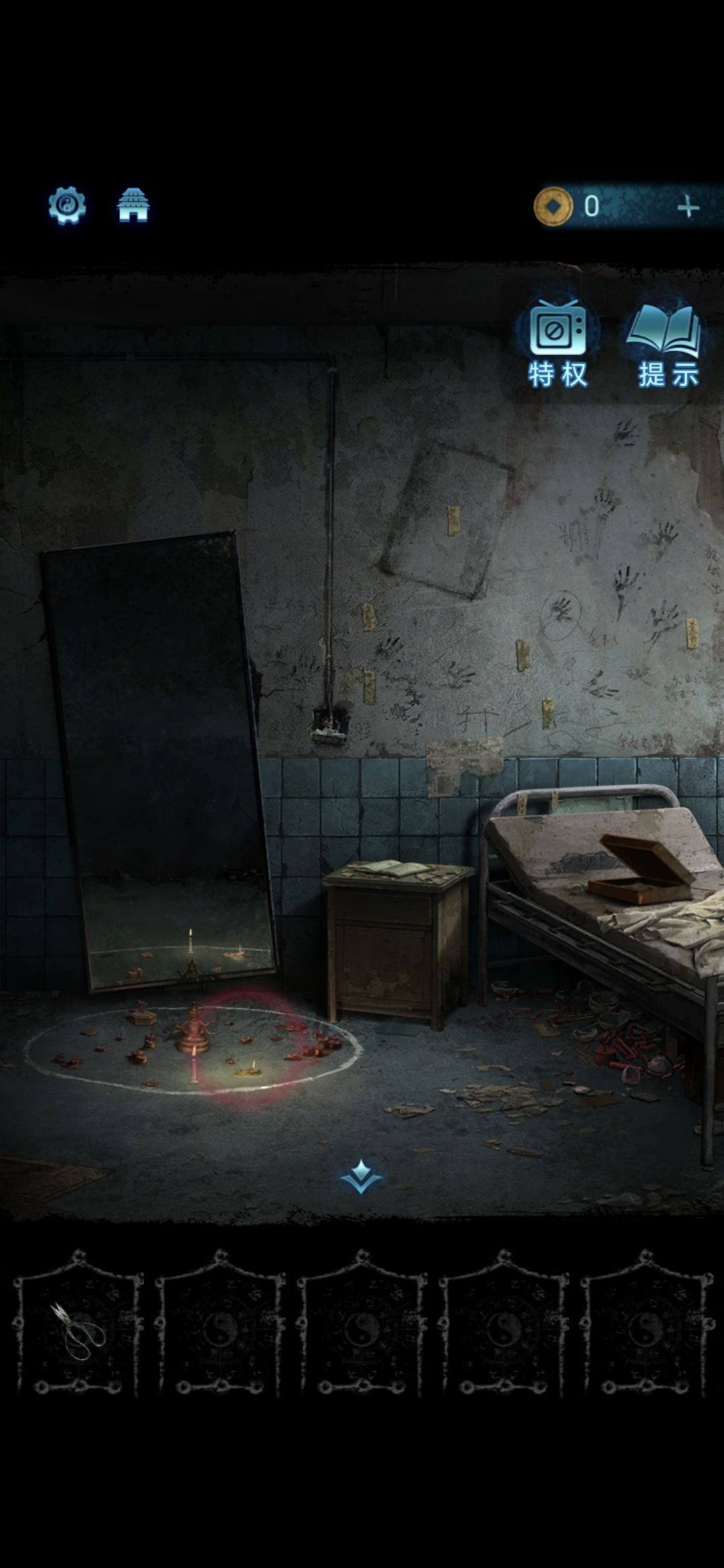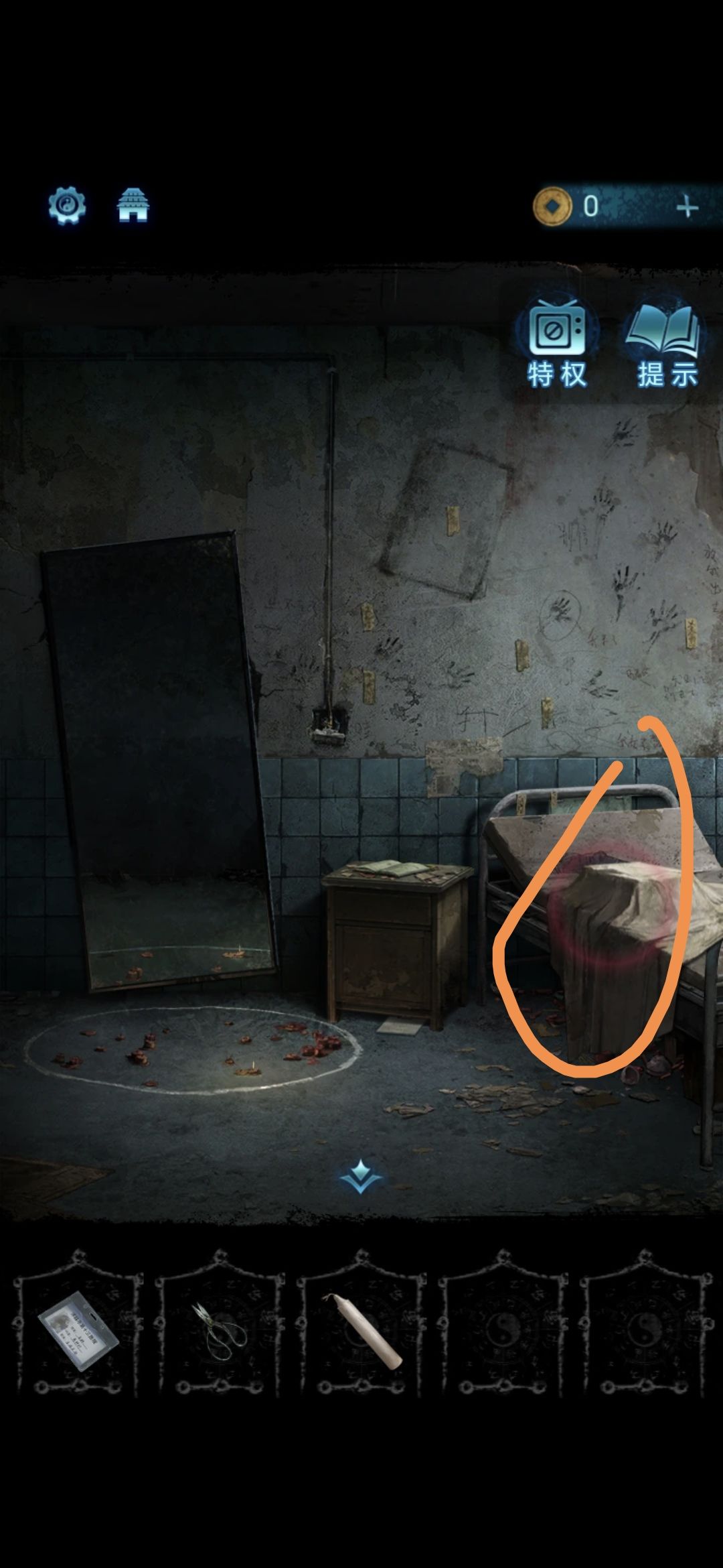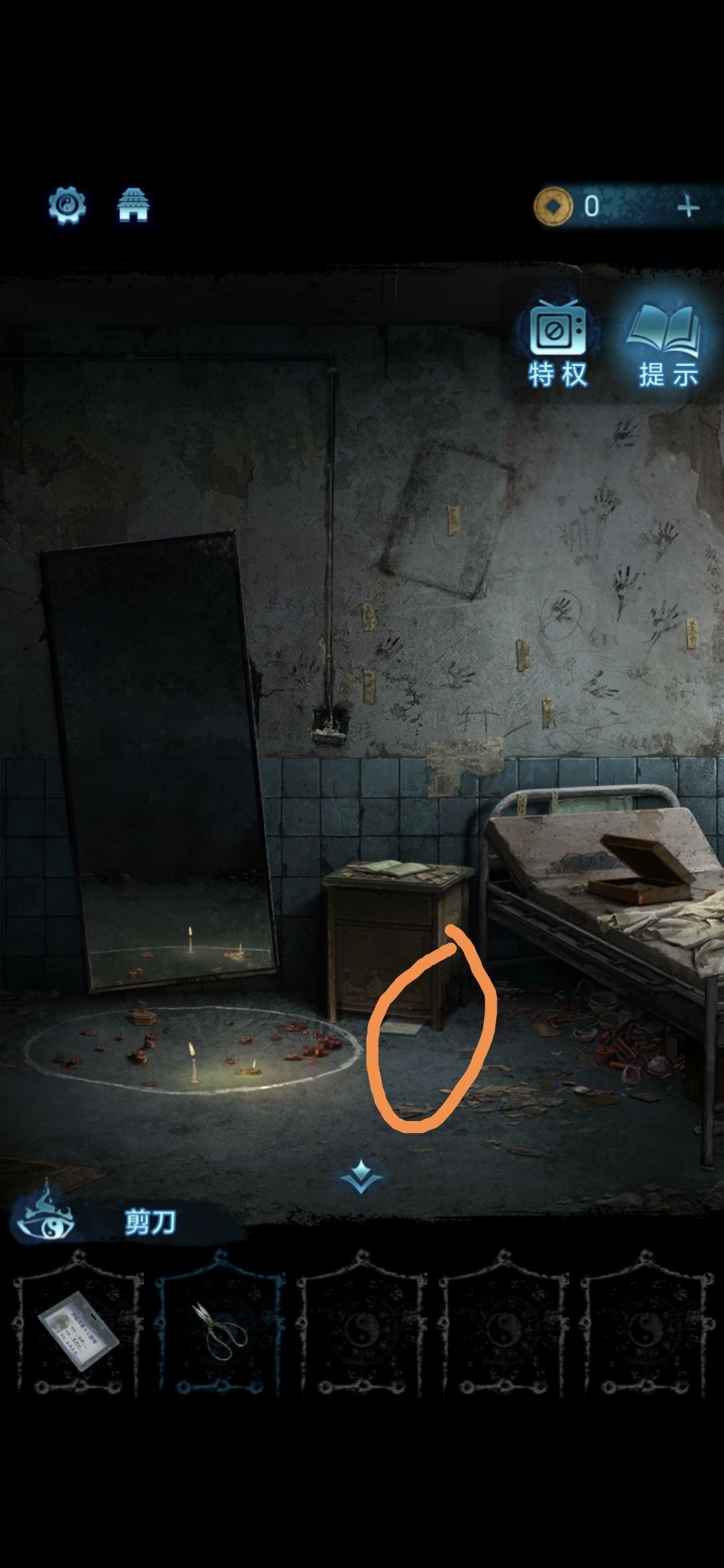 将蜡烛,八音盒,金像放在镜子前的圆圈里,过剧情,第一章完