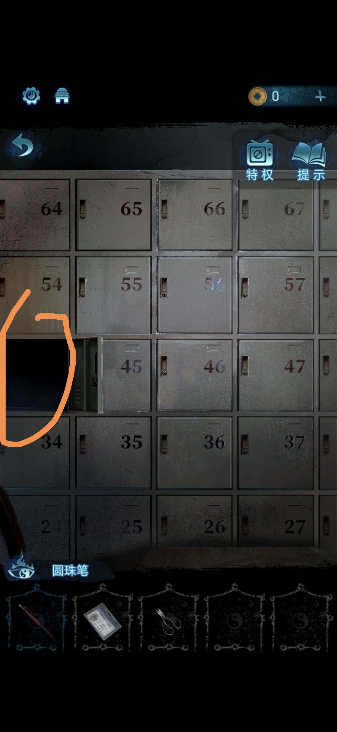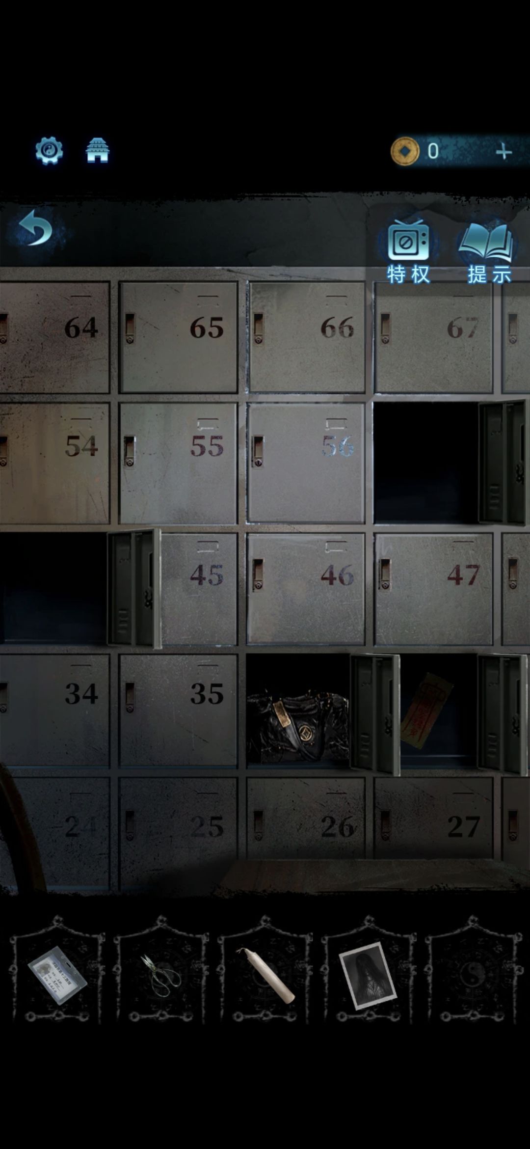 用门禁卡打开接待室剩下能打开的柜门,用钥匙打开57号柜门,获得照片