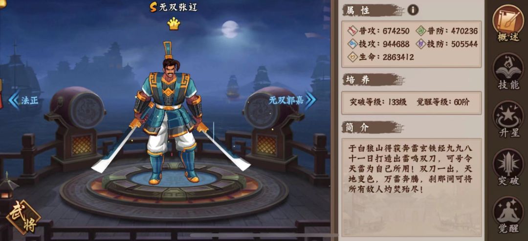 另外,如果无双张辽达到三冠以上,也可考虑使用无双张辽作为主输出武将。一方面是因为无双张辽霸体时间长,且机动性很高,容错率较高,另一方面则是无双张辽的大招可以造成海量伤害,这是很多PVP武将不具备的能力。