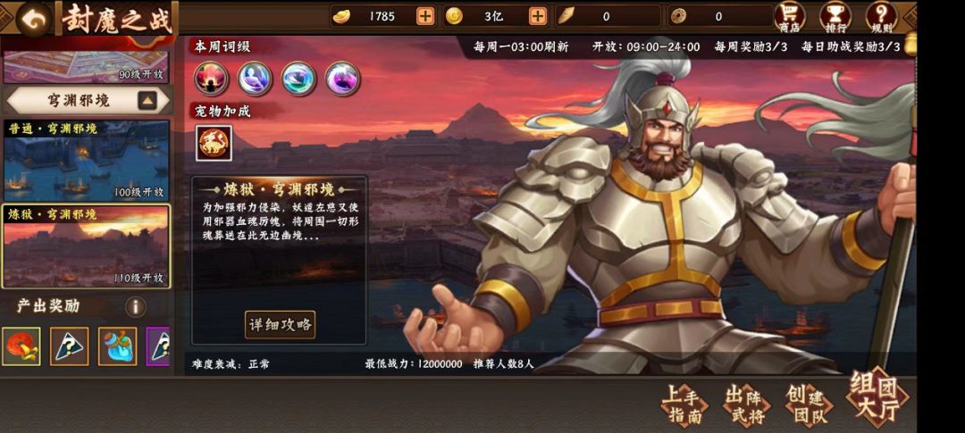 上一篇攻略介绍了110级封魔团本炼狱·穹渊邪境的基本情况以及难度特点,这一篇将从队伍配置、武将选择、天书阵法及宠物搭配等角度,详细解析如何通关这个炼狱难度的吴国团本。