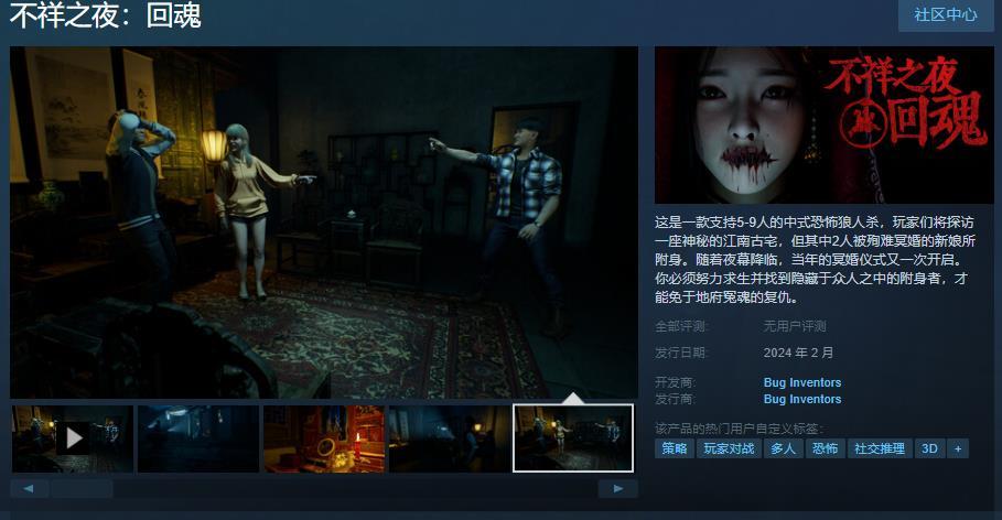 中式恐怖狼人杀《不祥之夜:回魂》Steam页面 2月发售