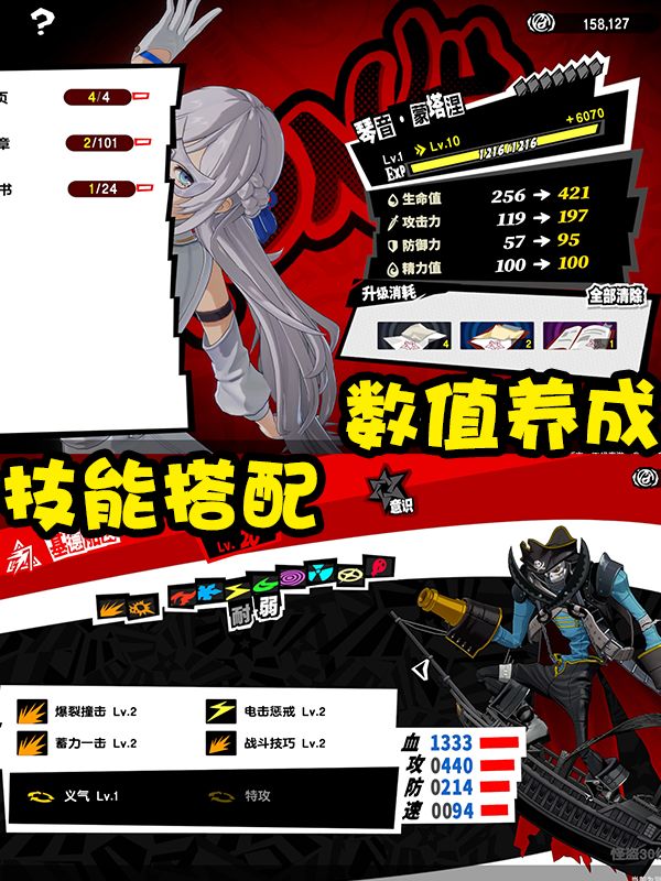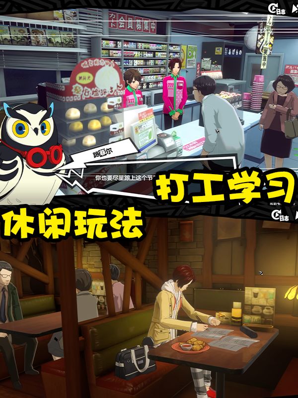 其实回合制玩法没啥说的,P5X保留了原作IP很多优良传统,我们熟悉的弱点攻击,支援攻击之类的都有,以及原作IP最核心的“总攻击”也继承了下来,我们在结合角色之间的克制关系,策略回合制玩法的魅力你绝对可以完全享受。并且P5X在大招动画,战斗动作方面的表现也依旧出色,所以说无论是视觉,听觉,玩法,都不会让你失望。除此之外养成角色也算是核心部分,P5X和原作一样,我们可以让主角打工学习玩各式各样的小游戏,这些小游戏最后都可以增加主角的属性五维。然后就是去攻略各种NPC,你与NPC直接会出现各式各样的事件,解决他们的困扰,与他们约会等等等等,增加协同者等级就是我们要做的核心内容。就跟培养与NPC的好感度是一个道理。非常容易上手。随着你与NPC的好感度越来越多。他也会给你带来各种增益能力。所以说这款游戏中,你不仅可以根据xp来攻略角色,也可以根据他们能给你带来的能力角度来攻略角色。除了上述的核心内容之外。P5X加入了多倍速战斗,并且前期剧情并不谜语人,玩家可以很快的了解到游戏剧情到底在讲什么。这两块优化可以说对于手游而言是非常不错的体验。