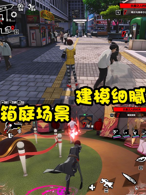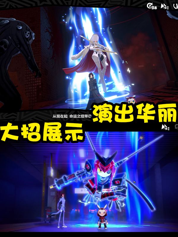 除了区别之外,P5X在还原方面也是很到位的。这款游戏作为手游,我个人认为高度还原是一个不错的选择。这样可以让更多的玩家去了解这个曾经优秀的IP。但是如果P6能快点出就更好了!其中还原的部分就是游戏的美术风格以及音乐风格,都是非常优秀的存在。红黑白的整体色调,非常的醒目亮眼。就连过场动画,城市构建的框架也都高度还原,如果你是老P5玩家,可以说真的没有什么学习成本。熟悉的味道一下子就上来了。说完了还原,我们来说说这款游戏的玩法!