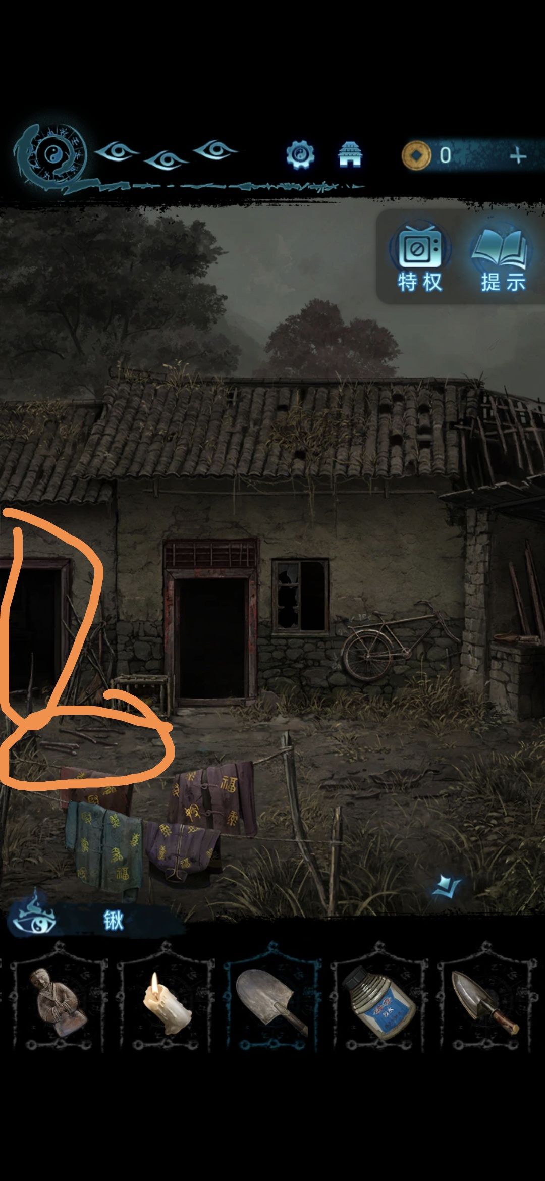 点击院子右侧的房间,获得铁锹