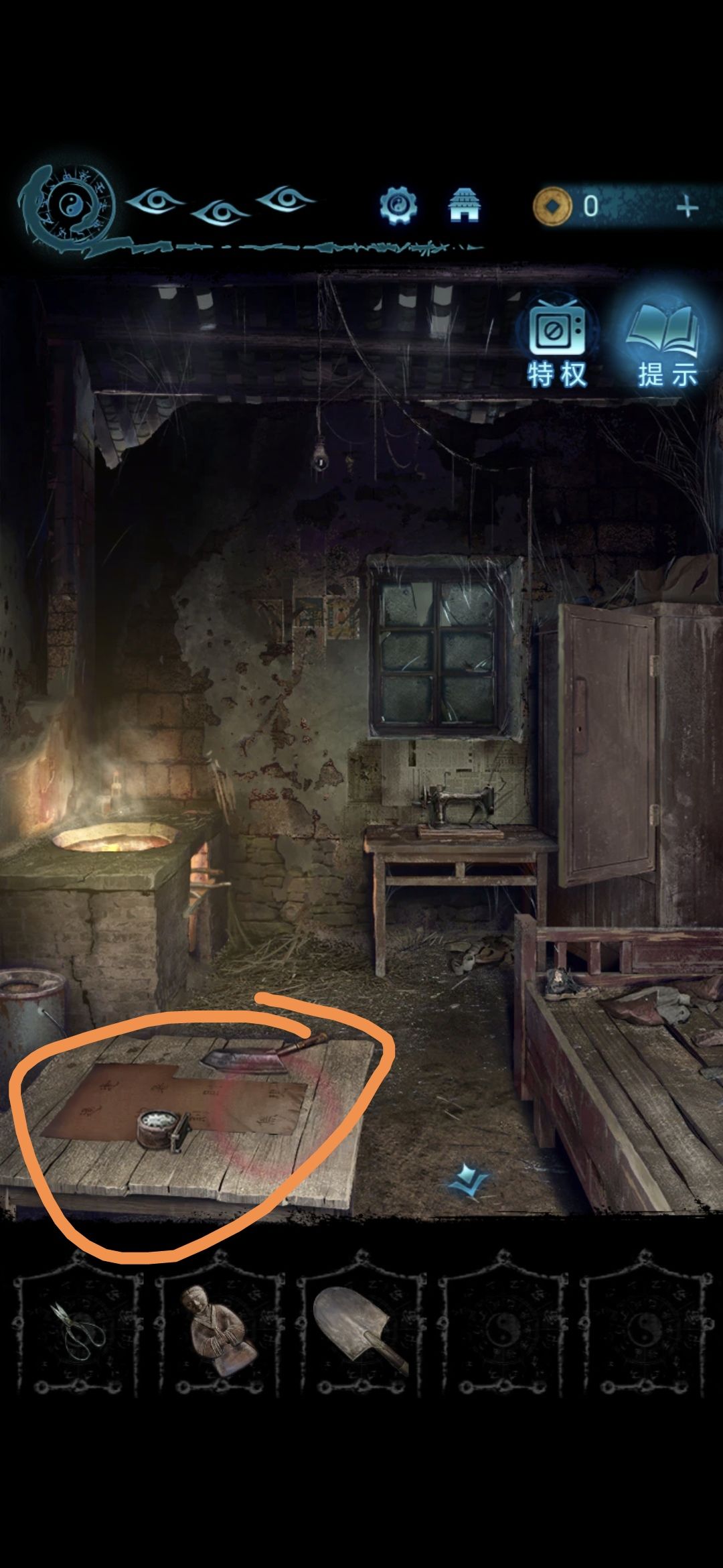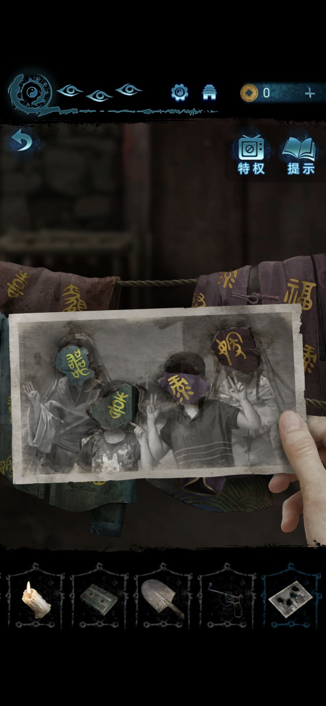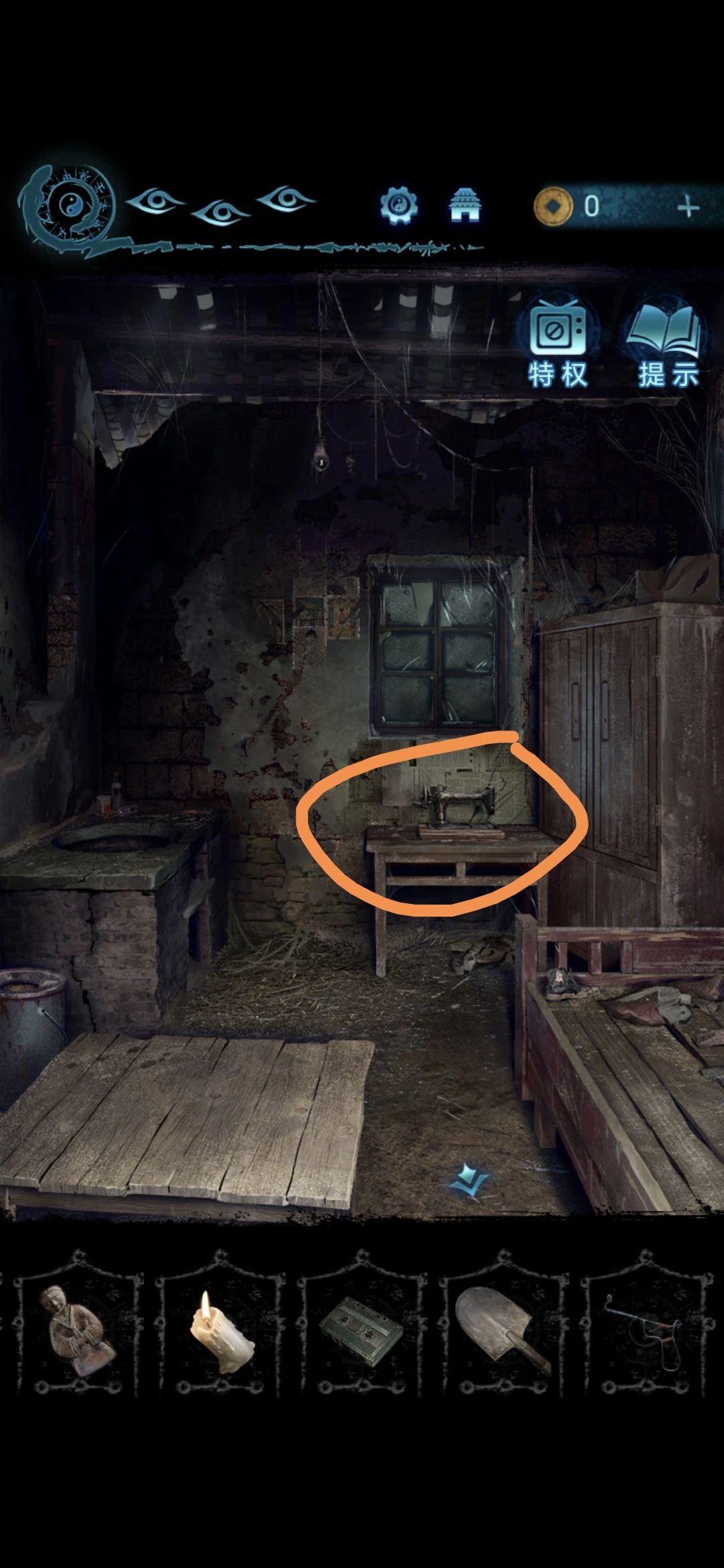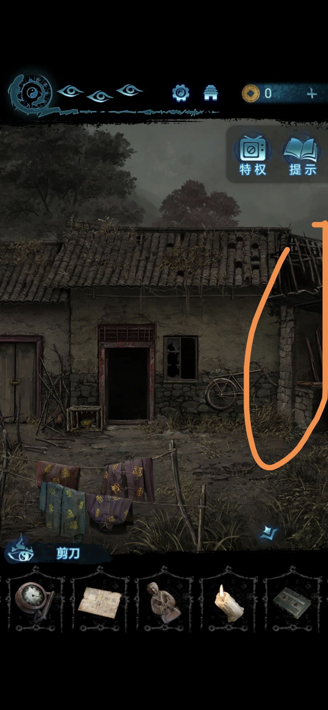 进入肖家地下的房间,把剪刀插进墙上的机关里,获得圆盘