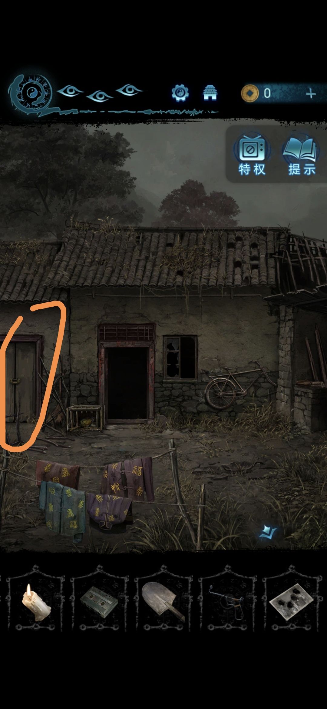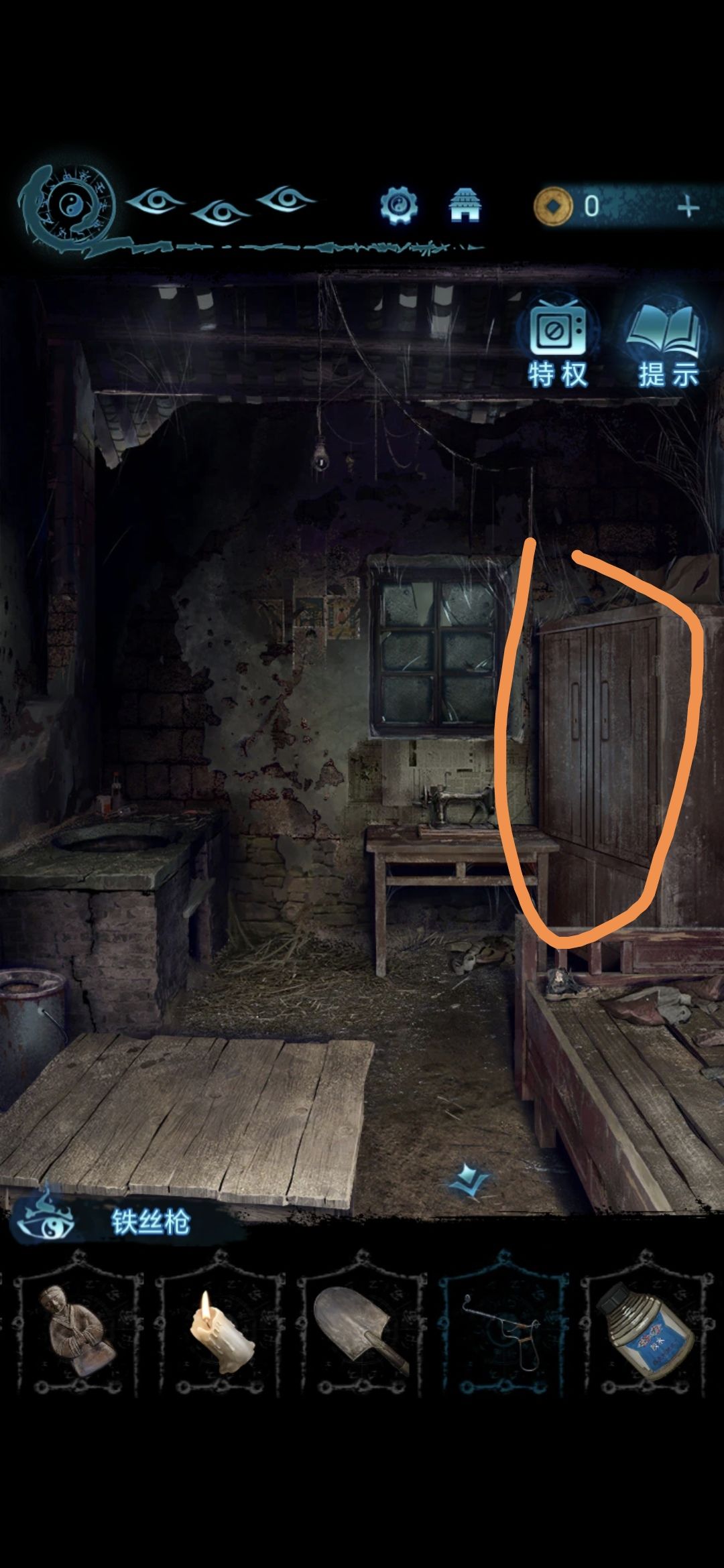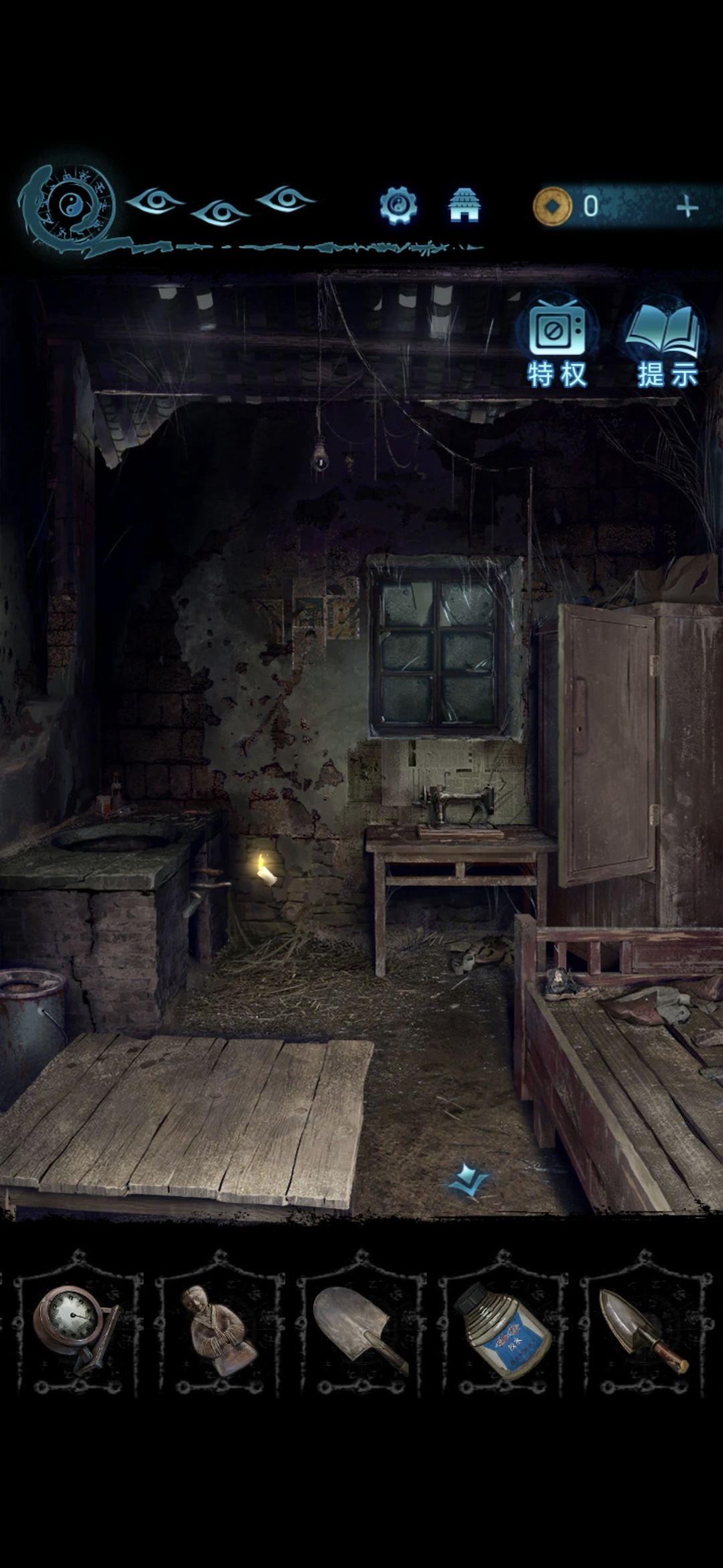 点击房间里的坑,进入坑底,获得蜡烛