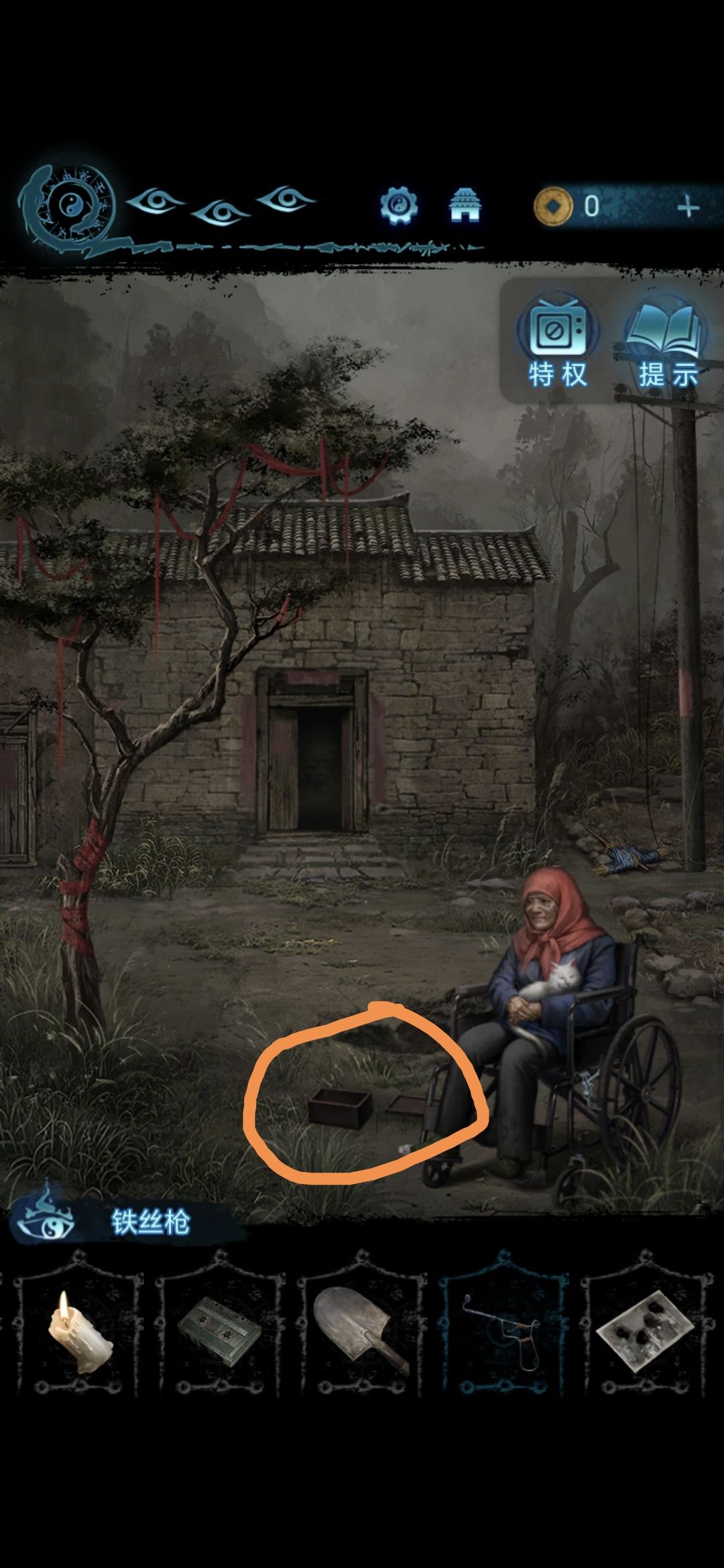 用铁锹挖婆婆身边的位置,获得时间胶囊,做小游戏,做完获得铁丝枪和照片