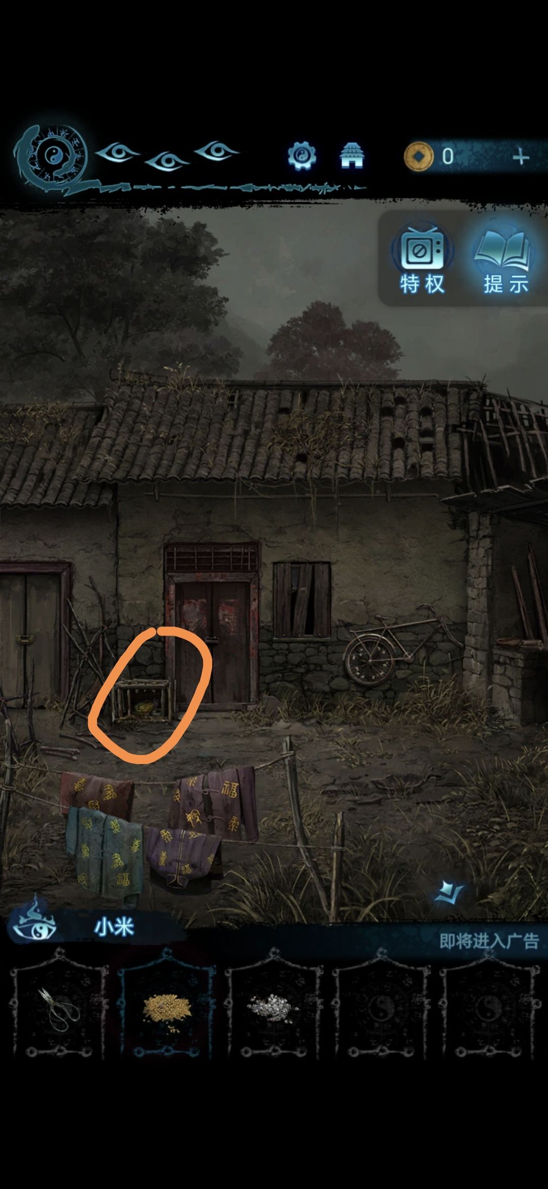 点击门,点击院子左侧的房间,(护士抽抽小高能)把小麻袋里的东西用簸络筛开,获得小米和砂石