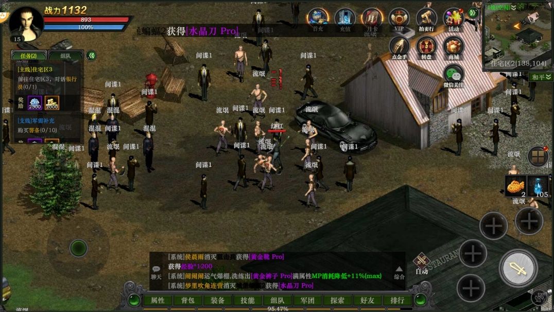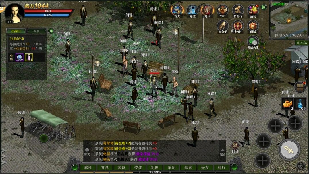 等级达到14~15级区间时,会遇到第一个等级卡点,玩家主线做到这里是14级,任务需要让升到15级,那么第一个挂机地点可以选在“住宅区2”(130,50),这里周围怪多(间谍怪出没频率高),经验收益很高。