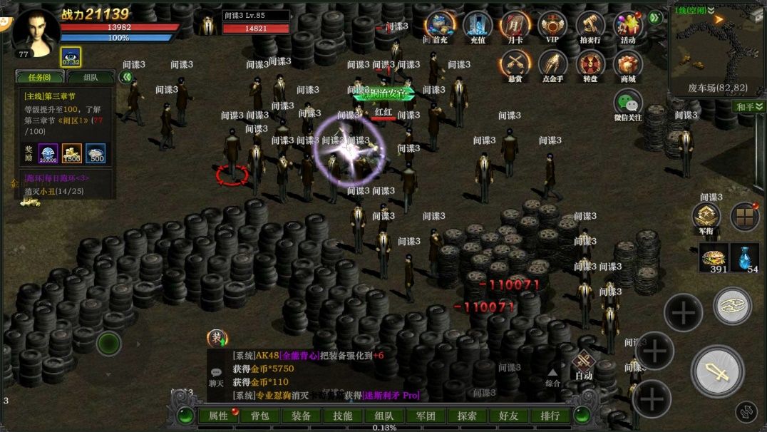 废车场地图只有4种怪物,根据装备情况,可以以“机械人1”-“小丑”-“龙军步兵”-“间谍3”的顺序根据升75~80~85~90级的顺序开始挂机刷怪,