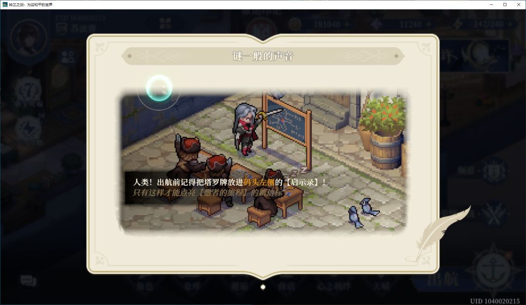 在铃兰之剑中,打完新一整章以后退出回来,想开始新章节,点击“出航”可能会卡在以下界面: