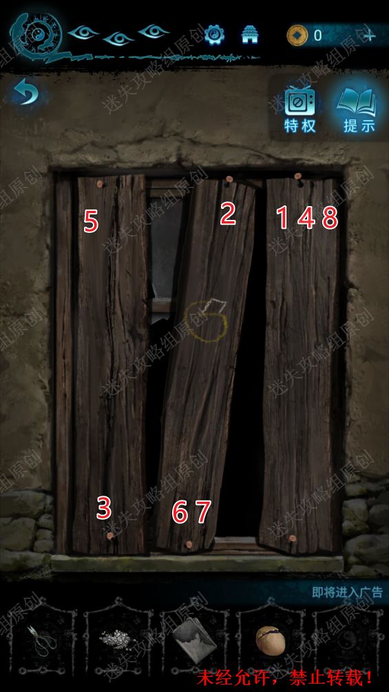 68.点击窗户,根据诊断书左侧箭头的线索,按照图中的顺序依次点击钉子。68.1