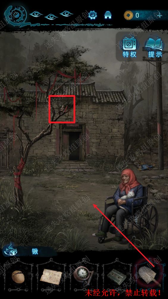 76.来到婆婆身边,根据儿童画的线索,使用铁锹挖出地上的盒子,点击书上的铜人。76.1 76.2