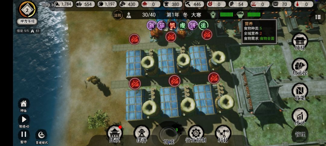 水培农场(空)开始建3个或者6个都可以,外加一个渔场,两个伙房,因为一直要用画饼卡,基本不会饿死人!