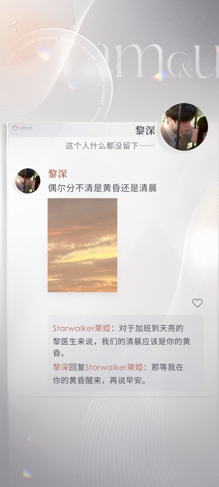 尤其是昨天在puq回我的这句“等我在你的黄昏醒来,再说早安”,心空暴击