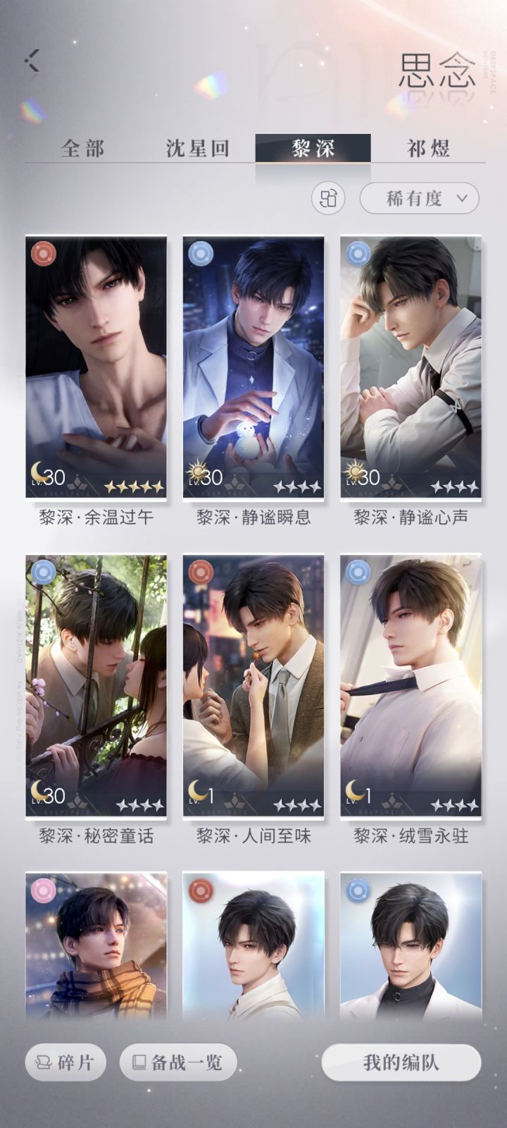 甚至抽卡的时候也是,来的都是黎先生,牵绊也在不知不觉中直奔24。这些年乙游几乎全尝试过,但是对纸片人心动真的是第一次,说明黎深就是我的天选纸片人老公!