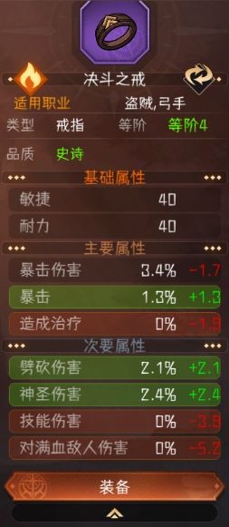 A:首先要理解装备的基础设定,品质和等阶是最重要最基础的,在同等阶的情况下,金色装备自然比紫色蓝色装备要好,紫色装备有3条主属性和2条次属性,没有特效的金色装备则多了一条主属性,而有特效的金色装备在3条主属性和2条次属性外还有一个专属属性,通常是对特定技能的加成。装备的等阶影响了数值的基础值,等阶越高的装备基础数值越高,此时会出现一种特殊情况,即等阶4的紫色装备甚至蓝色装备要比等阶3的金色装备更强,尤其是武器,基础数值的差距要比词条更大。然后是装备词条,你需要知道佩戴该装备的角色所需要的属性,例如一个使用职业为盗贼、弓手的戒指,词条中的造成治疗、劈砍伤害和魔法伤害等词条就是废词条,因为盗贼和弓手完全无法吃到这些词条带来的加成。综上所述,要判断装备的价值,首先看装备的品质和等阶,然后看具体词条是否有用,一个所有词条都有用的装备十分稀有,通常可以称之为“毕业装备”。另外,装备可以进行改造,能从所有词条之中任选一条进行改造,例如一件装备共有5个词条,其中4个为有效词条,那么可以进行改造,将那条无效词条替换成有效词条,以此来变成一件毕业装备。在游玩遇到困难的时候可以对装备进行强化,即使是过度装备也可以强化,分解后会返还一半的强化花费,总体不会太亏。总之,要判断装备的价值,需要玩家多多游玩,了解角色的特点。