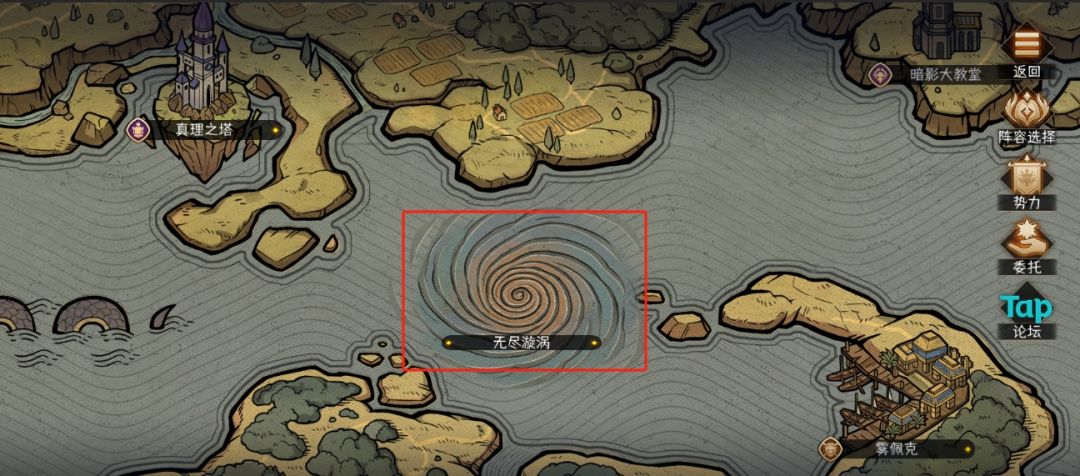 无尽漩涡位于真理之塔的东南边,雾佩克的西北边
