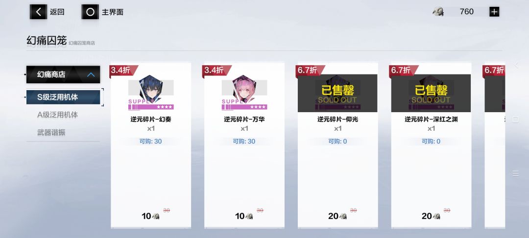 S级角色升阶用的碎片,除了抽卡重复转化外,通常还有两处可得: