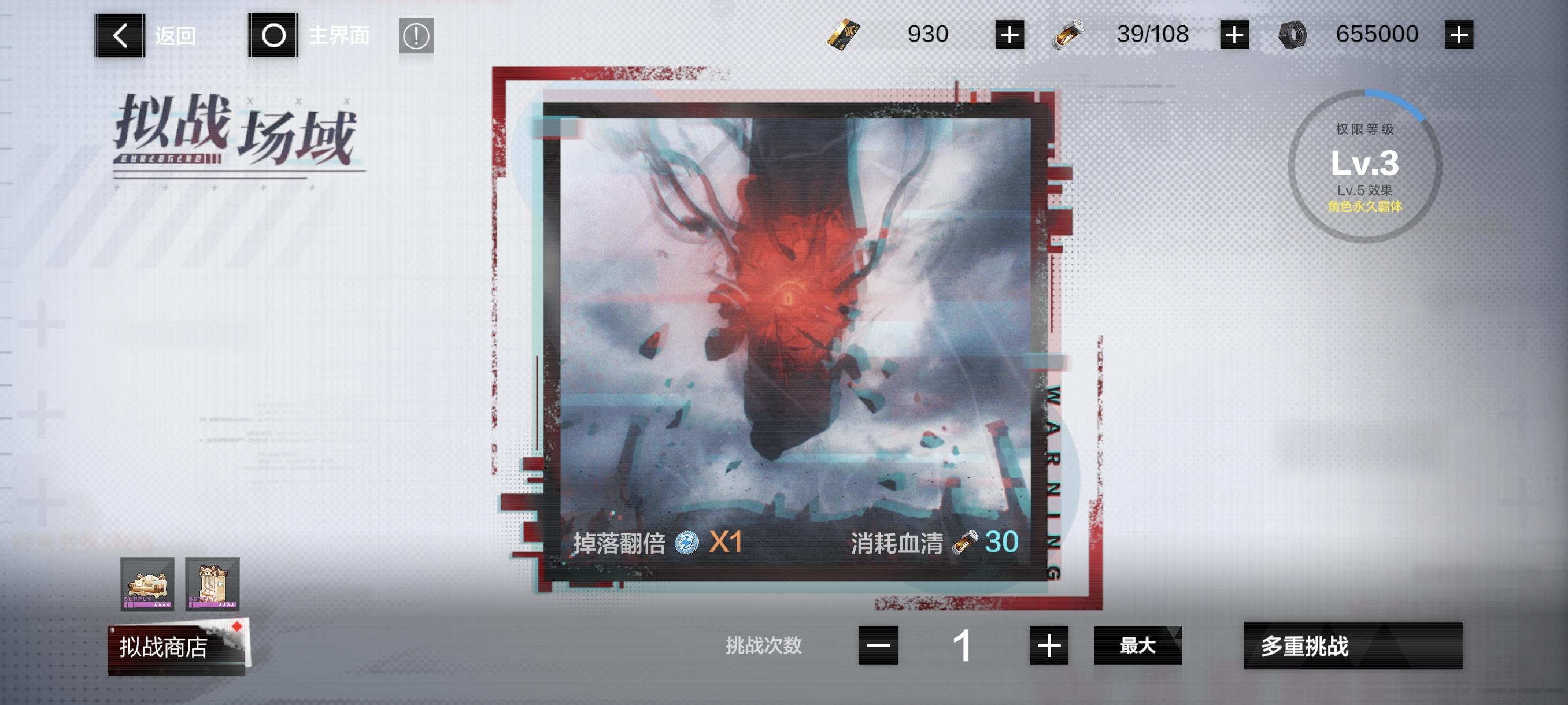 再打通第一章隐藏,升到16级,解锁日常清体力的重点——拟战场域。