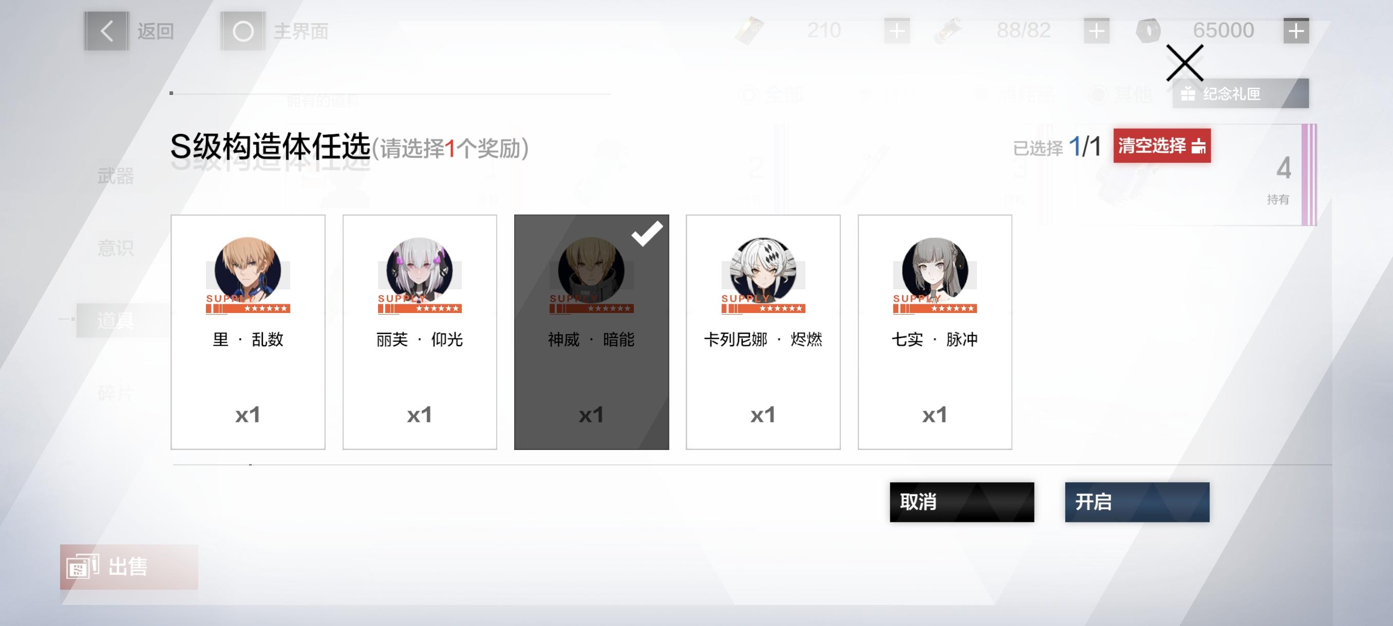 打通1-7的时候会弹出来,去仓库里面打开领取“神威·暗能”