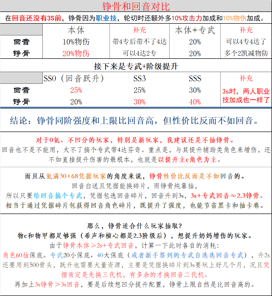 3s+专回音≈2.3铮骨,一个可以宿舍合成还能氪凭据换碎片,一个纯靠抽,性价比导致回音下岗了又没完全下岗。
