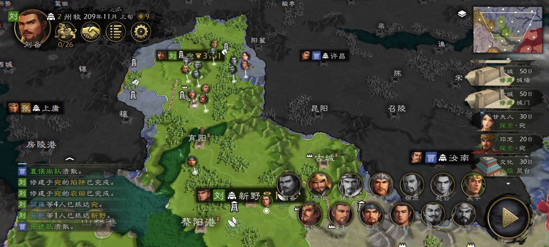 很多攻略里写到开局直接奔云南,苟发育,说实话这个就是利用了游戏AI的BUG,玩起来实在无趣。这边玩法就是新野开局直接硬肛曹操才有意思。