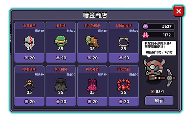 魔界岛暗金商店:通过暗金矿洞、暗金矿源房间,获取愤怒晶体(兑换币)