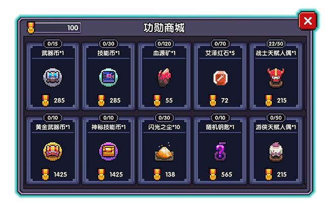 竞技场功勋商城:通过每周挑战、一周两次排名奖励获取勋章(兑换币)