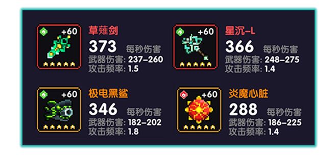草稚剑、星尘-L、任意橙色武器(比较好用的是极电黑鲨、炎魔心脏)这些武器都可以升到4星,紫色武器3星,之后作为材料喂给锤战需要佩戴的武器,又可以过度又不浪费。