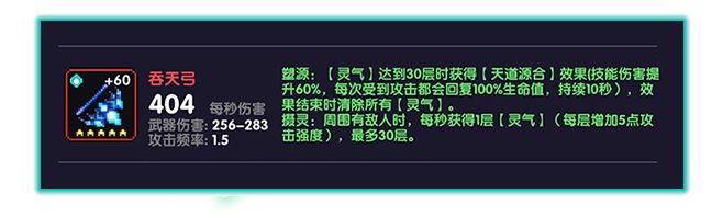 吞天弓+吞天剑组合:配合二哈魂卡可以高效的进入爆发期。单刷效率很高,组队存在稀释。伤害表现上和玩偶+弓相差无几。我是放弃了玩偶选择了这一套武器组合。