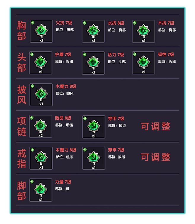 可以看到能够做调整的部位只有头部和披风,怎么调整取决与你的面板属性,少什么换什么(具体参考后期篇优化调整)