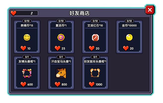 好友商店:通过每日发送爱心获得友情值(兑换币)