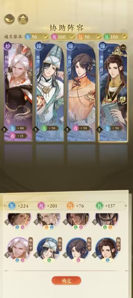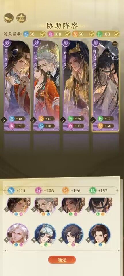 【摇光录】女帝日常-全名臣5阶属性一览