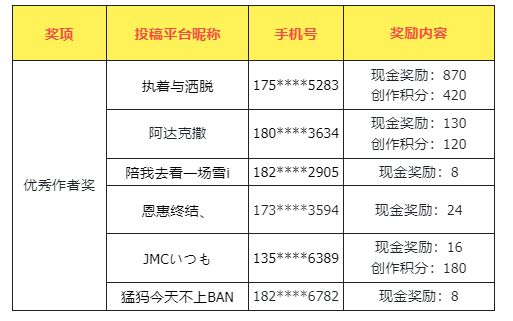 创作头像奖和更多保底激励获奖名单