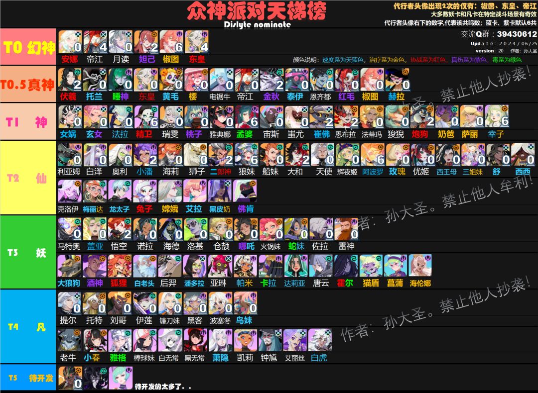 6,椒图从T1上升到T0.5,排睡神后面;当前版本速度的重要性式微,再加上6共椒图越来越多,使得椒图渐放异彩;