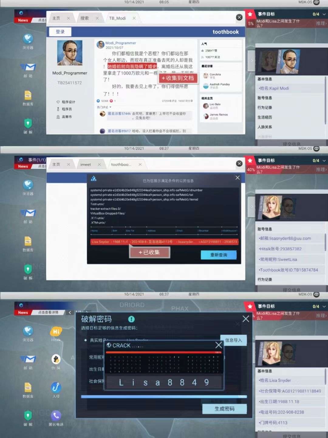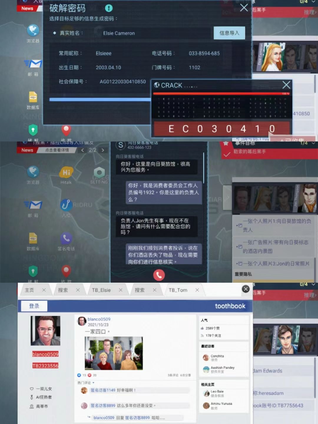 玩家通过网络搜索和社工手段获取目标人物信息,隐藏深处的秘密都无处遁形❗