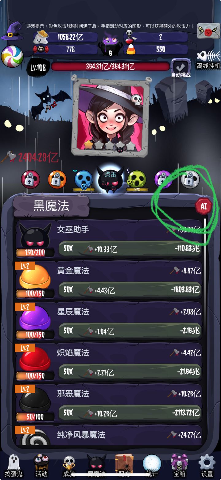 1.黑魔法升级时,可以调到AI模式再点