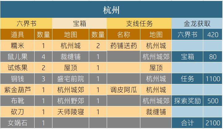 共计可收入金龙2100,支线任务会给的绿票这里就不统计了。这个地图的两个支线任务给的金龙奖励都不少,宝箱也没有位置刁钻的,就是捉迷藏没有攻略可能要自己多找几个地方。
