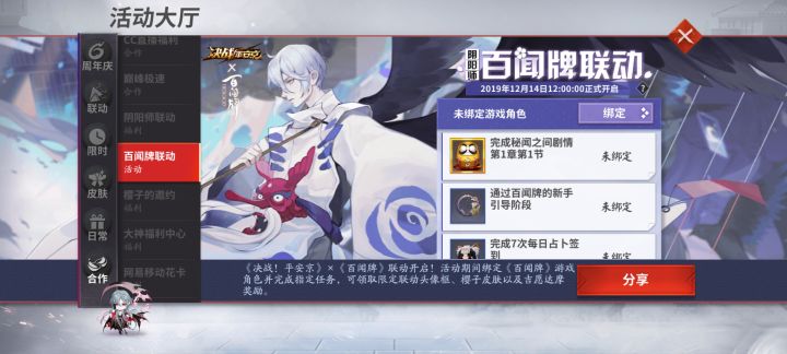 这是决战平安京,绑定百闻牌账号拿个奖励