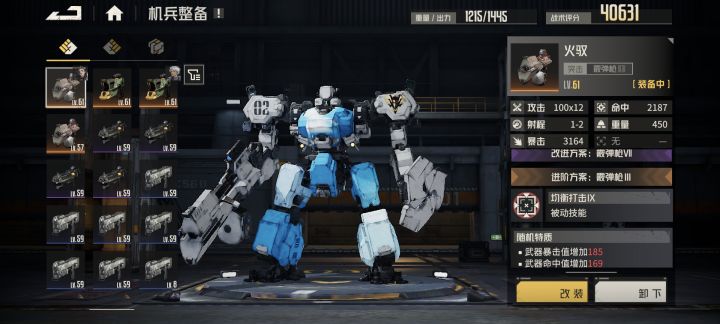 2.40多到50多级(负载强袭、充能和γ1区开出来的级别),这个阶段命中是第一优先属性,背包换成降对面闪避、再攻击等增加命中,武器用均衡打击洗命中,开爆发前用火箭、导弹、其他突击垫刀削血,保证一回合4喷伤害拉满。