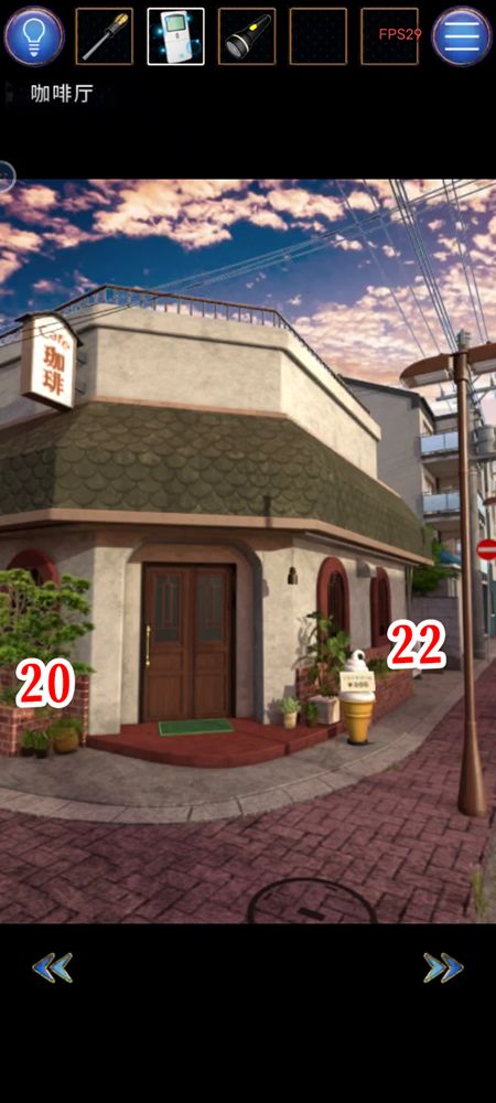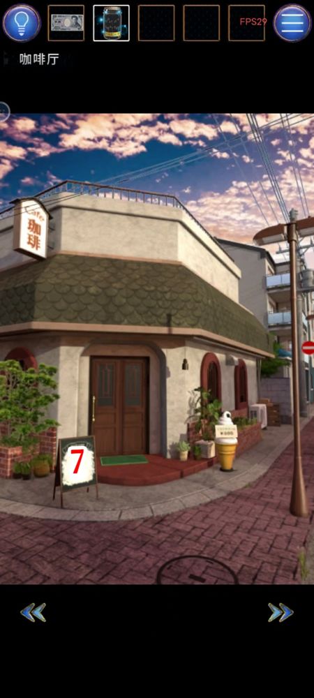 通关条件:擦掉咖啡店门口招牌的粉笔污渍,黑板擦在咖啡厅的密码柜内。