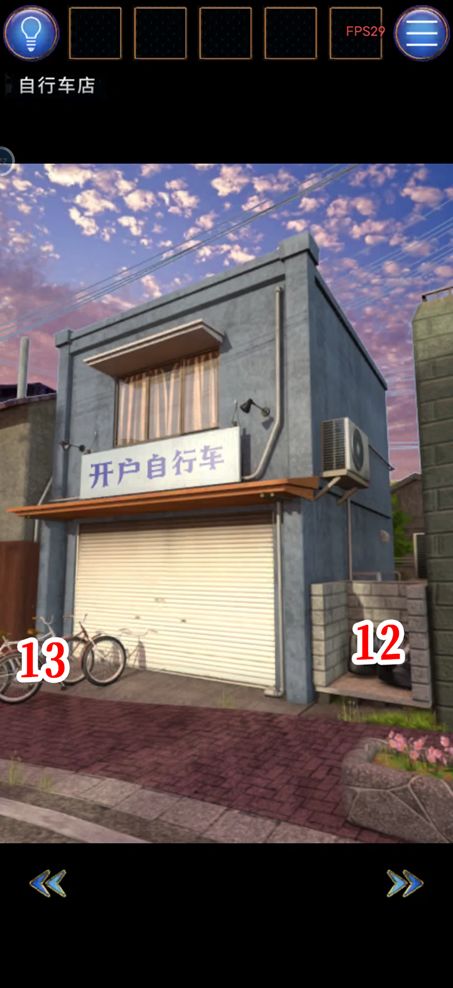 开启新地图自行车店,点开位置12将垃圾移开后可以拿到一叠杂志,点开位置13处将自行车移开可以拿到一个密码工具箱。