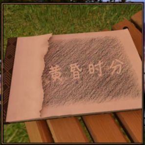 回到山丘在位置42处的本子上使用铅笔,可以得到密码“黄昏时分”。