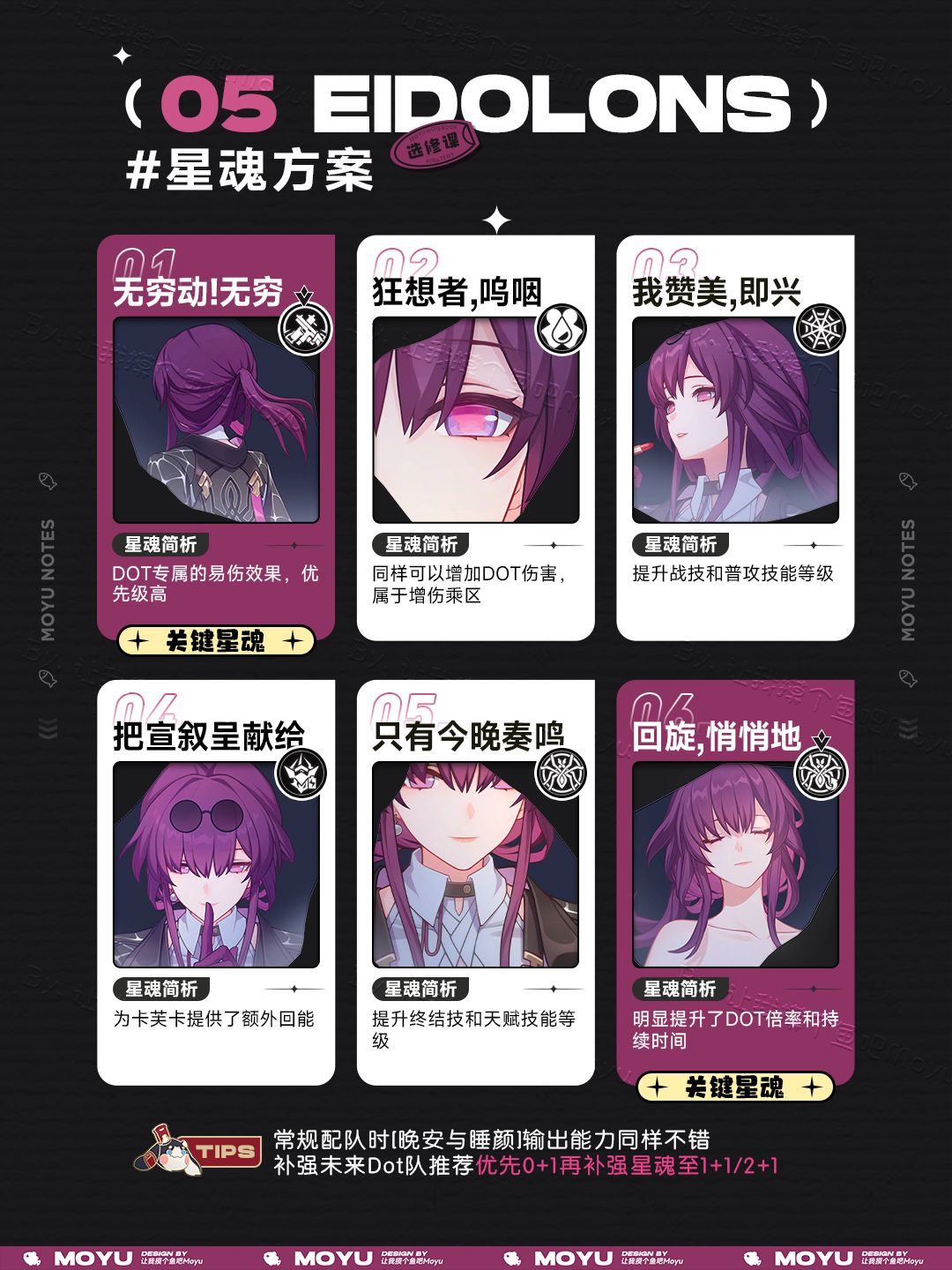 按照6件装备皆为初始3词条,合计【6*(3+5)】共48总词条数拆分,图中对于卡芙卡的区别: