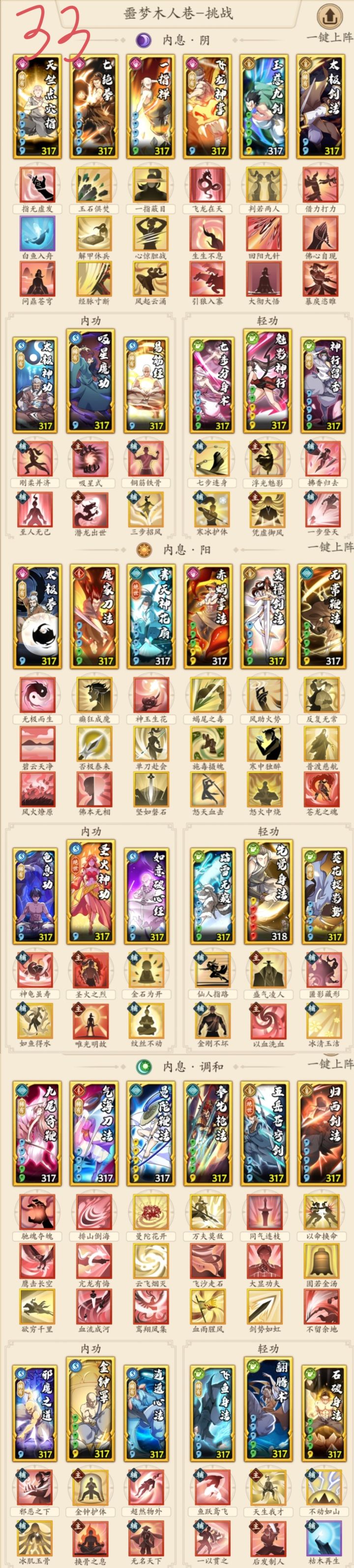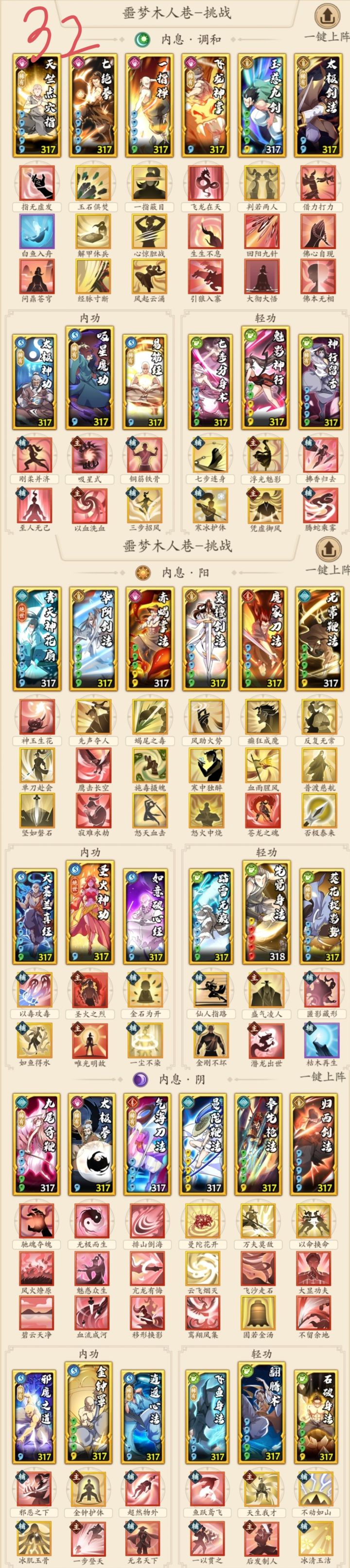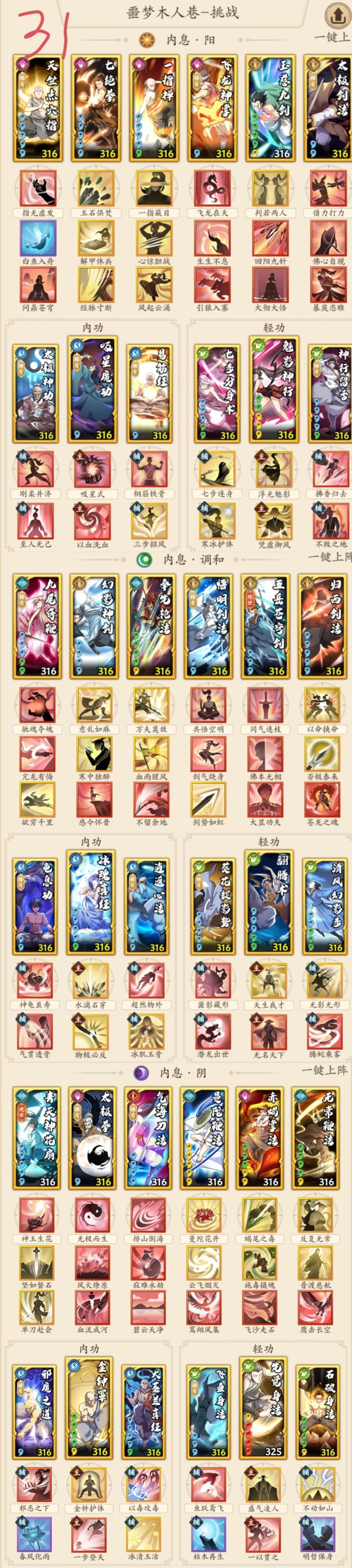 2.套路、招式都可以微调,最好往自己玩的套路靠(利用好太极剑、太极拳、青天神花扇,强度高不吃星)