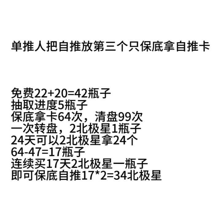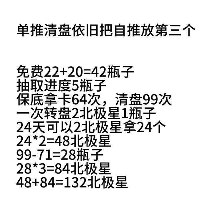 图1到图5为本次转盘复刻每位设计师需要达成转盘目标最少需要花费的北极星数目以及如何安排消耗北极星拿到想要的目标